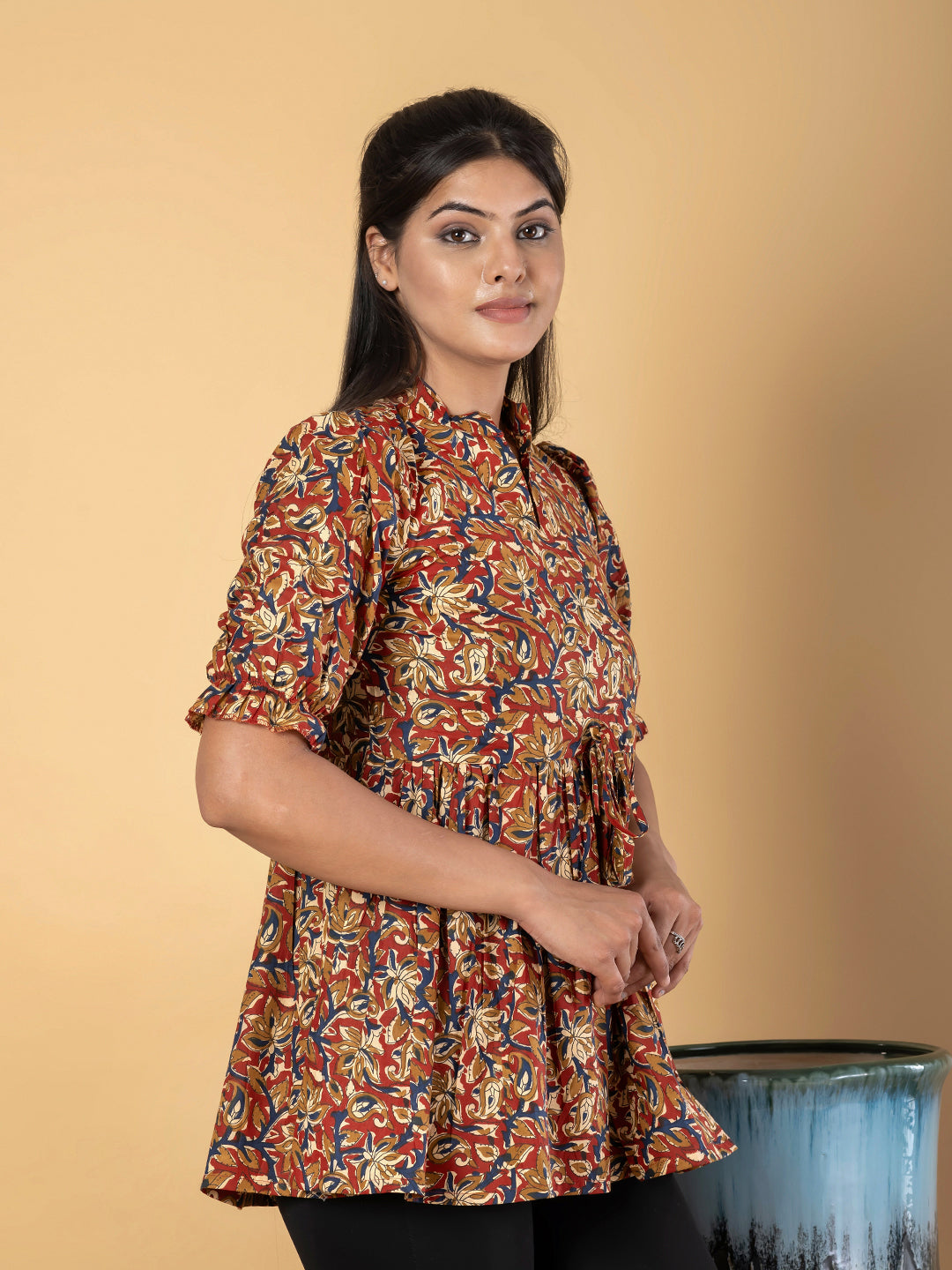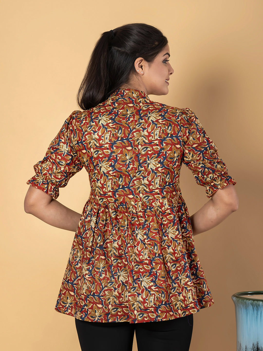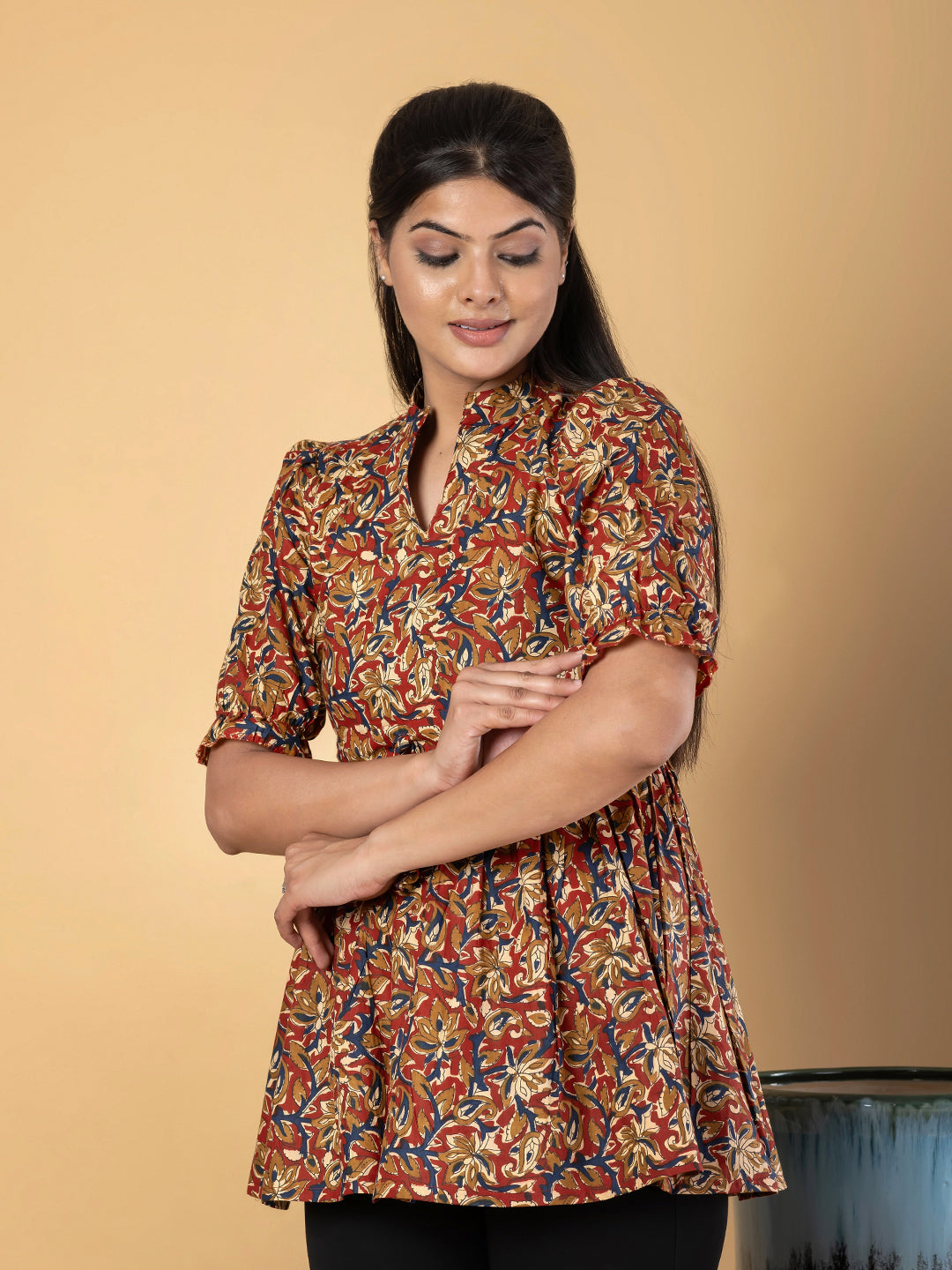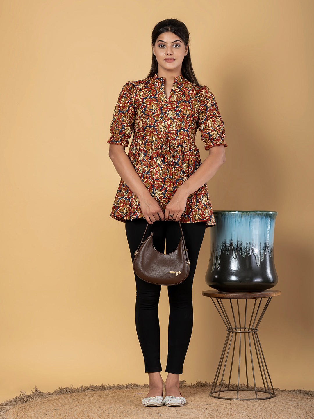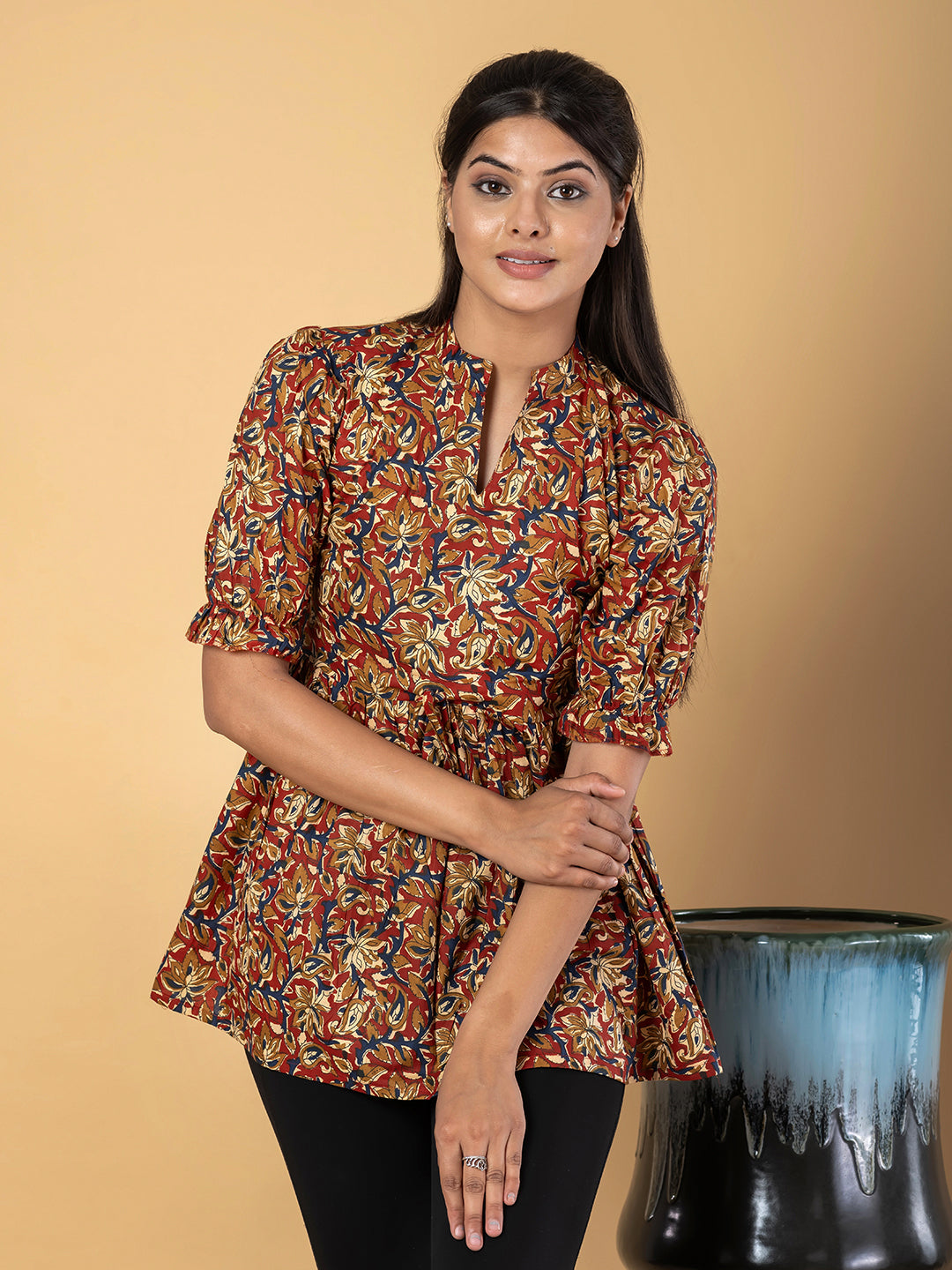 Orni Fashion Rust Ethnic Motifs Peplum Top