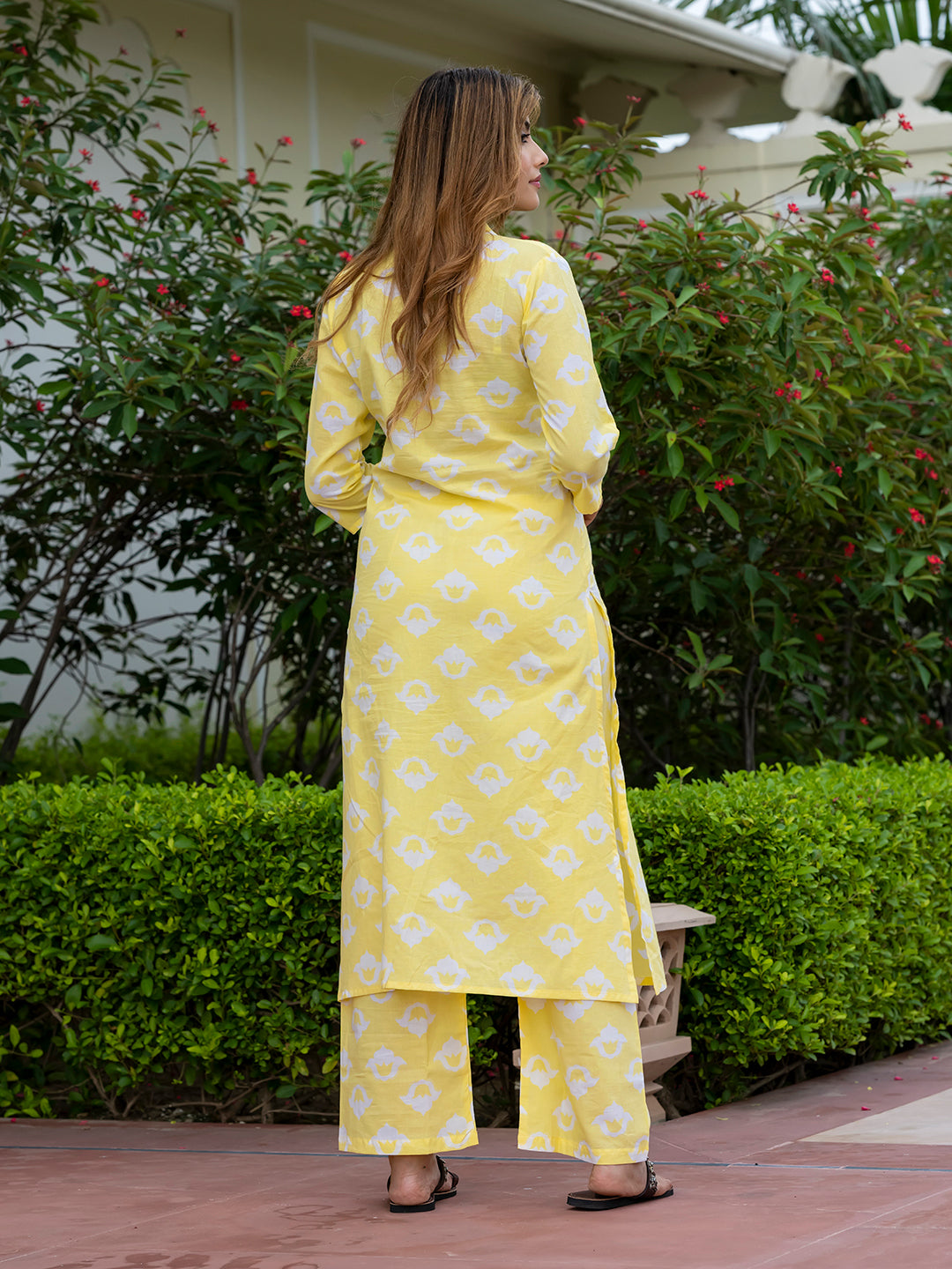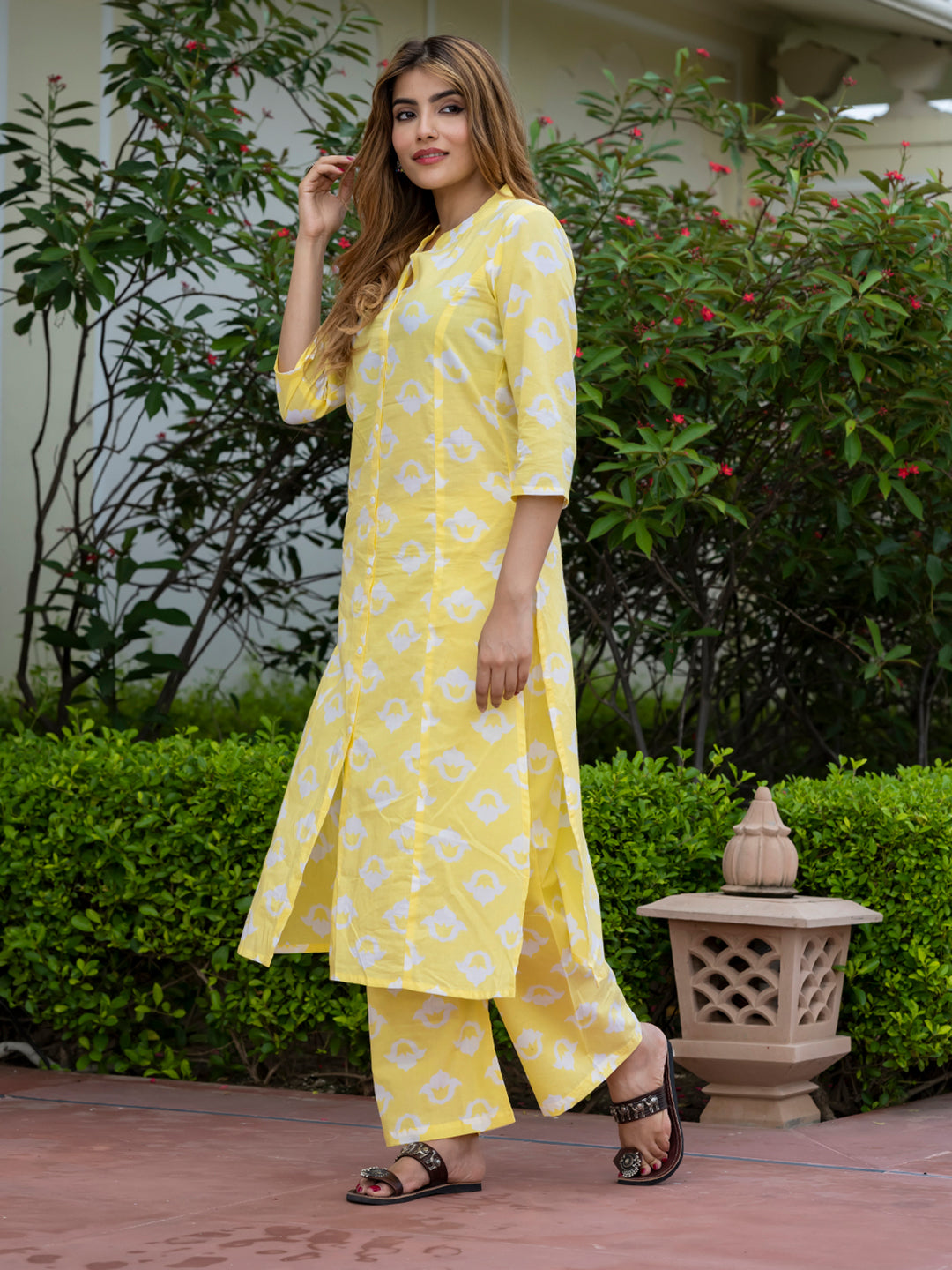 Yellow & White Printed Kurta with Palazzos